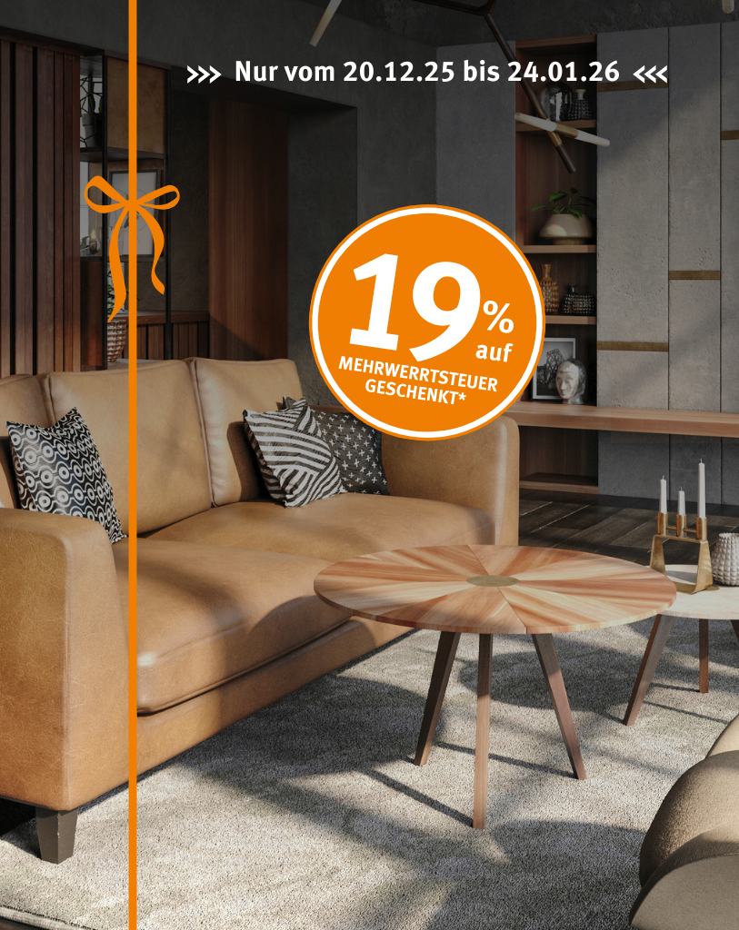 Nur vom 20.12.2025 bis 24.01.2026 schenken wir Dir die 19 % Mehrwertsteuer auf ausgewählte Produkte und Leistungen im WohnStore.