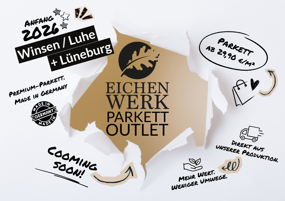 Der Einstieg beginnt bereits ab 29,90 €/m² – direkt vor Ort im EichenWerk Parkett-Outlet in Hamburg Farmsen, Winsen (Luhe), Lübeck und bald auch in Lüneburg.